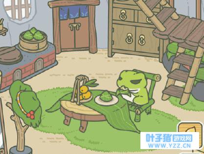 旅行青蛙中国之旅最近完成更新后,迎来了端午节版本,很有仪式感 门口挂上了艾草菖蒲