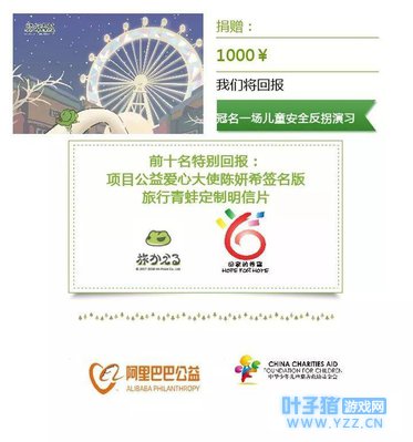 “宝贝守护计划”是中华儿慈会回家的 希望支持全国NGO、政府机构等爱心团队 在各地开展儿童安全反拐宣传活动的公益项目, 以反拐演习+反拐小课堂的形式 ,让孩子在 “真实”体验中学习到反拐的小窍门 ,同时提高家长对儿童安全反拐教育的重视! 现在参与淘宝众筹,不仅可以和蛙蛙一起做公益,还可以获得回报, 前十名还可以获得项目公益 爱心大使陈妍希签名版旅行青蛙定制明信片 哦 !