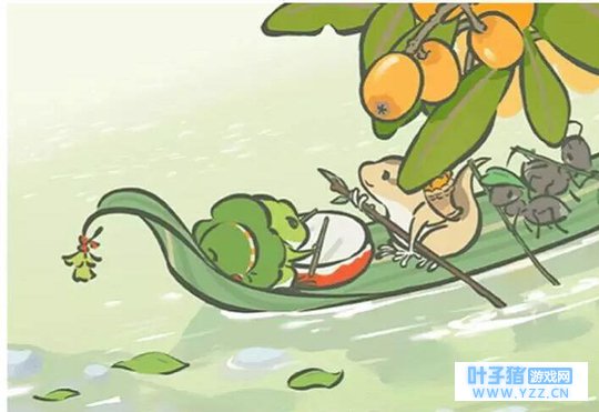 旅行青蛙:端午节限定SSR明信片,蛙儿子跟泥鳅一起划龙舟