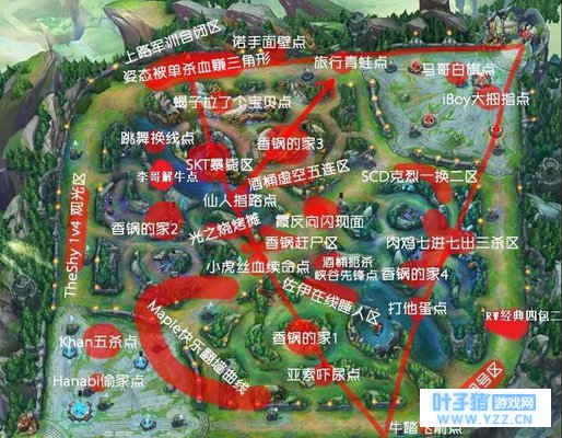 这张地图中最引人瞩目的莫过于旅行青蛙、香锅的家以及马哥举起白旗点了,其中香锅的家只有红蓝BUFF,这应该意味着香锅的绝食型打野只收大野怪其他小怪完全不搭理,刷完BUFF就冲进敌方野区或线上Gank,前15分钟经济落后对方1188就是这么来的。此外马哥举起白旗的点也很有灵性,马哥这波操作可是气得Khan冲出血池想搞一波的,可惜输了就是输了,还是要老老实实和马哥握手。