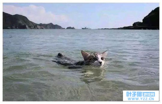 在炎热的夏季,猫咪喜欢到河里游泳,“虽然我于沧海只是一粟,可是我的心里盛得下整个沧海。