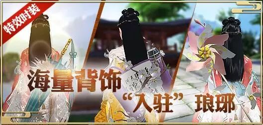 厌倦了 背着武器 打打杀杀的日子 想要 换换感觉 怎么办? 全新背饰加入琅琊饰品团! 赶快收起你的兵刃 背上或俏皮或帅气的新饰品 展示不一样的自己吧! 想想师妹背着 小风车 可爱的样子 嘿嘿嘿~