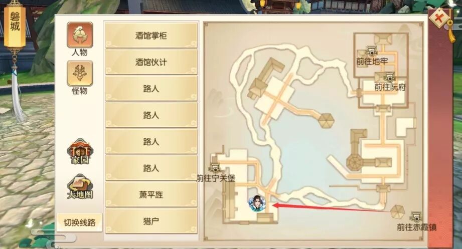 纪琛会出现在磐城的西南角的一片空地上,坐标大概(62,44)的样子。