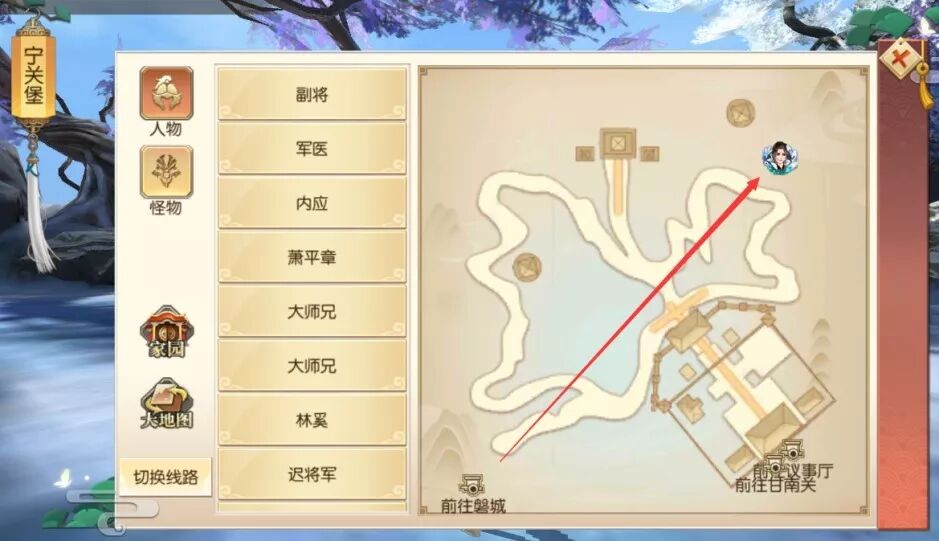 康王则会出现宁关堡东北方向的山头上,宁关堡有两个山头别走错了,坐标大概在 (205,203)的样子。