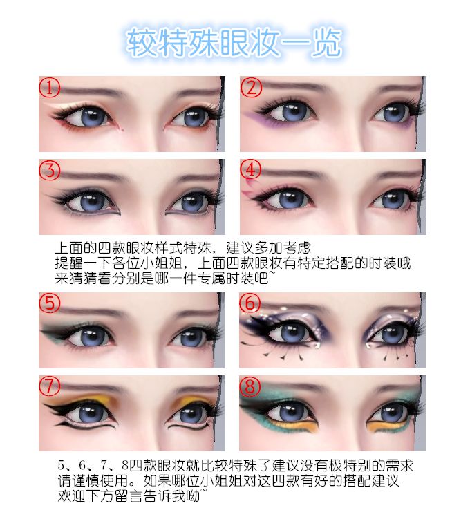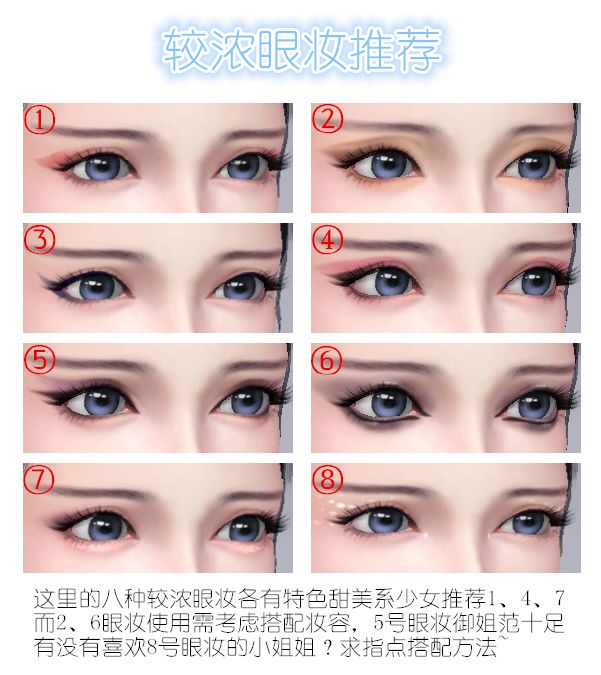“师妹快来!帮主叫我们去拍合影啦!” 等下让我补个妆换件衣裳! 在琅琊世界里难免会有非常重要的场合 不论是帮派合影还是朋友婚礼 精心准备才能应付重要场合! 下面的八款眼妆是师妹精心挑选出来哒 本人超喜欢5号,你们类?