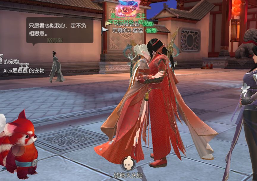 萌娃系统出预告的时候,我就和无痕说:“无痕,给我生个孩子吧。”无痕当然是生不出来啦,最后生孩子的重任还是在我身上。我说:“你想要男孩女孩?”无痕说:“我喜欢女儿。”“你喜欢女儿我就给你生女儿!”但是我心里没底,毕竟是游戏概率又不是我能决定的,索性最后生出来的是女儿,保存了一点脸面。因为我在育儿系统刚出的时候出了一点事,我们的宝宝比其他人都迟怀上。我很紧张地问无痕:“宝宝叫什么啊?”“红烧肉。”“啊?大佬你是饿了吗?”就这样,红烧肉的名字就被他那个无肉不欢的爸爸定下来了,希望某天她爸爸不会在饿了的时候把红烧肉吃掉——来自麻麻的祈祷。