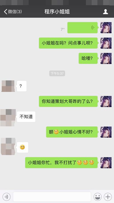 作为策划大哥最 忠诚的小迷弟 我绝 不可以 看着他沉沦呀! (才不是为了拍马屁!) 俗话说解铃还须系铃人 想要让策划大哥脱离苦海 我得先明白这 苦 从何来! 于是我找到了 绿叶从中一朵花 的程序小姐姐