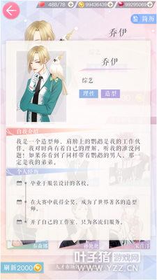 值得一提的是,人才市场的每一位专家都各有特色,甚至还有自己的简历,可见制作组的用心。 在人才市场中也出现了许多非常有趣的人物形象,例如杀马特的潮霸天,爱直播的郝美丽,让玩家更加容易融入恋与制作人的世界中。 |