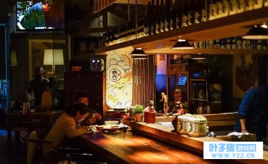 店内装饰满满的日风设计, 前面挂满了日系海报, 日式的灯笼,琳琅满目的日式烧酒, 木质桌椅,满眼的古风古韵, 暖光灯下厨师就在你面前操刀烹饪。