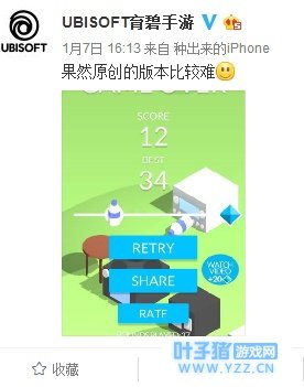 有意思的是,在这款游戏爆红的时候,就有玩家发现这款游戏与育碧在2016年推出的《欢乐跳瓶》玩法相似。之后育碧手游也发布了一条耐人寻味的微博:“果然原创的版本比较难”似乎是在暗示腾讯模仿。