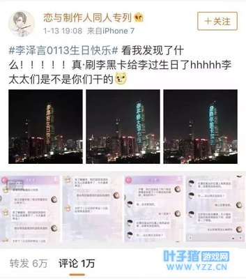 1月13日,是游戏中人物李泽言的生日。这一天,深圳京基100的大厦上出现了为李泽言庆生的霓虹灯。