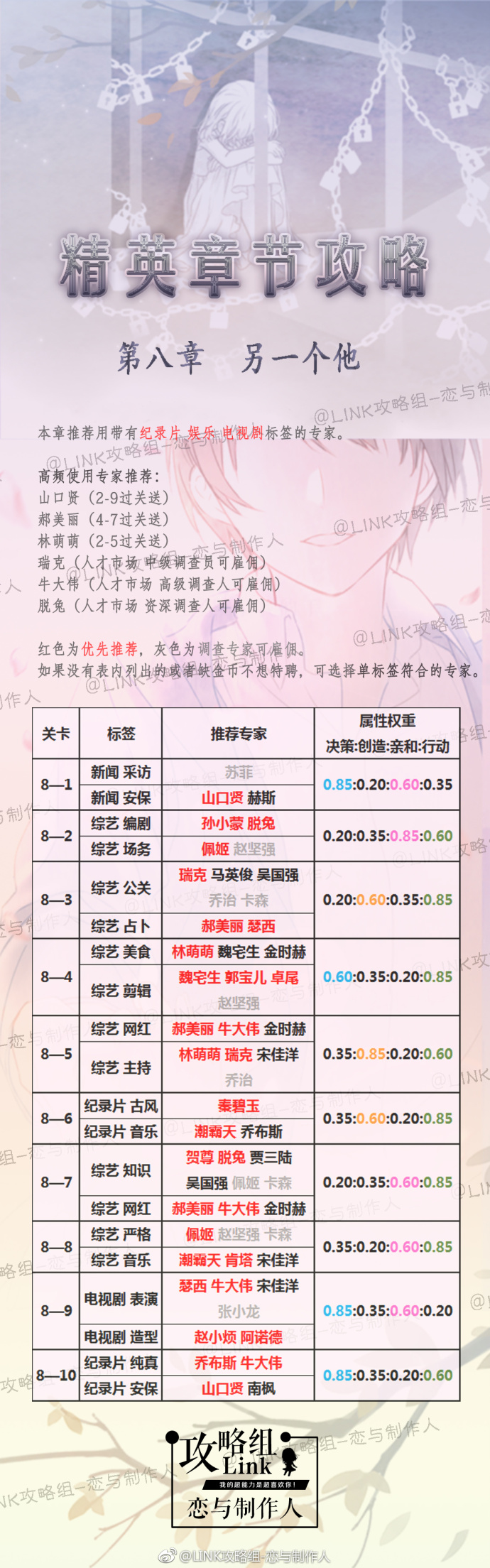更多最新攻略敬请关注 LINK 攻略组官博 @LINK 攻略组 - 恋与制作人 或者关注我们的微信公众号( EvolLINK ) |