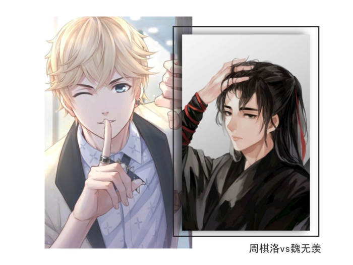 两只小奶狗: 两者均如阳光般洒落在你的周围,积极活泼开朗,更愿意主动向对方靠近。设想爱情中如果没有一个愿意向前迈一步的,那还能有故事嘛?PS感觉两者都是小奶狗型,在BL中特别适合做受。一般中年少女,对这种三次元的奶狗基本没有抵抗力的! 《魔道祖师》中魏无羡是蓝忘机的官配受。《恋与》中李怼怼(李泽言)和周阳阳(周棋洛)也是配一脸,霸道总裁酷金主x阳光吃货大明星,自然周阳阳得为受。 身高方面,请注意周棋洛176cm、魏无羡186cm,均低于李泽言和蓝湛,emmm…很好… 《恋与》白起↔《魔道》江澄