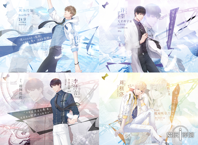 几乎覆盖言情小说各类型男主特点的四位人设 传统观念中,女性玩家群体对游戏的消费认知度较低,她们接触的也多为消除、跑酷、音乐、益智等休闲类游戏,随着《王者荣耀》《阴阳师》《剑网三》的火爆,越来越多的女性玩家开始加入并活跃于网络游戏团体中。 而《恋与制作人》以恋爱向的文字冒险剧情,由玩家经营一家影视制作公司并将其不断发展壮大,同时与各具魅力男主的不断滋生亲密关系,对于女性玩家来说浪漫有趣且容易接受。