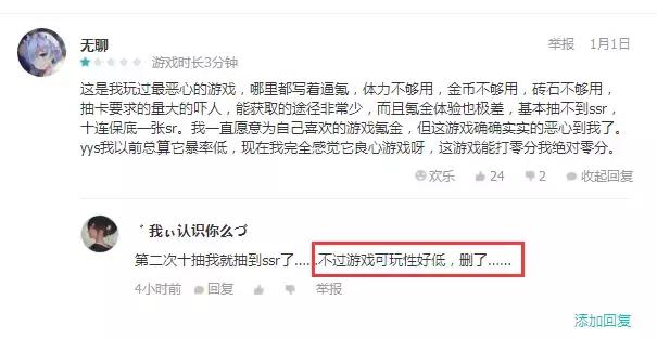 《恋与制作人》的游戏性在哪里? 根本而言,《恋与制作人》只是一款声优+剧情+抽卡的游戏,游戏本身与玩家唯一交互在于抽卡。其他诸如剧情任务以及声优语音,都是属于玩家自身在“YY”。 当“YY”完了之后,《恋与制作人》的缺点便暴露出来了,其本身的游戏可玩性极低,没有剧情支撑或者剧情完结之后,玩家便会随之流失 。现在《恋与制作人》在TapTap已跌至6.3的评分。