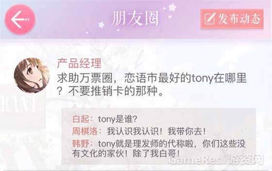 正如多数男玩家对枪车球题材感兴趣,多数女玩家对娱乐圈题材抱有天然的热爱。故事采用目标用户熟悉喜爱的题材,提升吸引力。游戏中,网络流行语使用恰当,会提升玩家认同感;而使用不当,则会大幅降低文案的品质感。《恋与》观众留言、朋友圈文本中适量点缀的流行语常令玩家会心一笑,一是故事背景有使用网络流行语的天然条件,二来也体现出策划对目标用户的深度了解,起到了提升玩家认同感的作用。