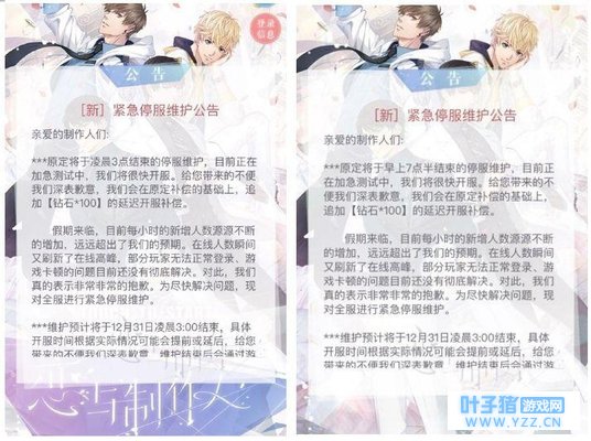 虽然属于小众市场,但乙女游戏一直拥有非常稳定的用户群体。而随着《剑侠情缘三》、《阴阳师》、《王者荣耀》等现象级国民游戏的大热,数轮培养之后, 女性游戏玩家的数量呈几何级数增长 。 但在洛阳城、平安京、王者峡谷盘桓已久,难免会感到一些疲惫和厌倦。男性玩家休闲时,可以在舰娘和《lovelive!》这样的宅向游戏里为纸片人小姐姐们一掷千金,女性玩家却很难找到合适的替代品。 新世代少女们的游戏习惯和需求已然养成,但市场一直缺乏真正为她们量身定制的作品:日系乙女游戏虽然不乏大作,但文化背景离生活太远,且大多存在汉化、机种的天然隔离。本土的橙光游戏虽然数量庞大,又基本是由个人和小团队,使用橙光文字游戏制作工具所制作出来的单纯文字游戏,缺乏精品,注定难成大气候。 国内游戏厂商当然也注意到这种需求。例如曾颇受期待的手游《梦间集》,画风极其精致飘逸,同样拥有庞大的人气cv阵容。可惜由于人设空洞、玩法一般等原因,最终雷声大雨点小,令人遗憾。 回到《恋与制作人》,它的制作团队苏州叠纸并不算业内大牌,但提到他们之前出品的换装手游《奇迹暖暖》系列,女性玩家应该都不陌生。从似曾相识的画风和界面上,不难看出恋制正是出自暖暖团队之手。而《 暖暖》最为核心的收集、搭配、闯关、评价玩法,乃至整个故事主线剧情由甜美走向暗黑的转折,在《恋制》中都得到了传承和进化。 玛丽苏式的开场剧情,甜美俗套的画面,可以向下兼容更多用户。得到大量目标用户之后,简单的数值搭配、直观的评价玩法,使她们不至于遭遇瓶颈快速流失。而后真正留住玩家的,是游戏细节的打磨、人物的刻画和剧情的跌宕起伏。 叠纸并非横空出世,打造了一个爆款玛丽苏游戏。作为国内少数一直专注于女性向游戏的团队,它将暖暖中得到过验证的元素,精心包装为恋爱游戏,方才获得比前一次更壮观的成功。 但过于“壮观”的成功,也让其有些不堪重负。新年假期里,《恋与制作人》由于新进人数过高、负载过大而频频卡顿断线,甚至一度停服维护到清晨。
