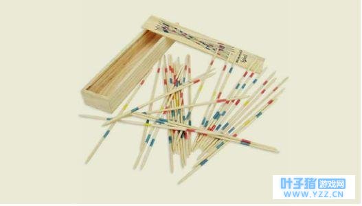 2 挑彩棒 这是个需要耐心和巧劲的游戏,据说与古代的算筹来历也有关。玩时需要收拢整把彩棒再放掉,使其自然散落,然后两人轮流挑动,在不动到其他彩棒的前提下挑去拿走。