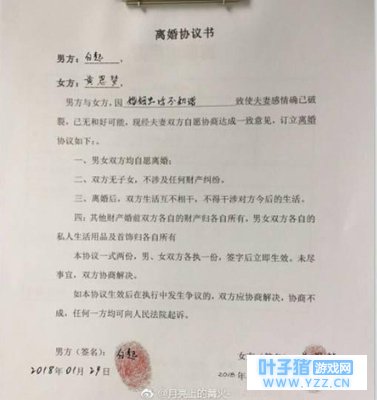 不过,今天小编却是发现了一件惊天动大地的事情!小编无意中在网上看到某女子的一纸离婚协议书!竟然是和我们的白起学长的哦!没错,就是一纸离婚协议书啦!