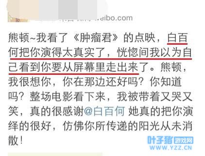 但不得不说导演选角眼光很毒辣,白百何简直就把熊顿演活了。 这一段最后跟大家算是告别的话,可以说是演技大爆发了,从一开始的洒脱到后来忍不住哭泣,情绪逐渐爆发,看得很多人都既感动又悲伤。