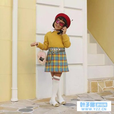 小小年纪但真的比我们要敢穿很多,红绿大撞色在她身上也合理得很,配上花毛衣和白球鞋,复古又时髦,不就是Gucci秀场走下来的吗?