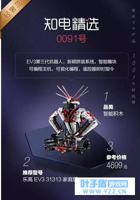 推荐理由: EV3分为教育版和家庭版。一般来说,教育版适合有一定基础的孩子玩,可以研发创新。 如果没有什么经验从零开始玩,那就建议你买家庭版,家庭版上手容易,可玩性比较高。