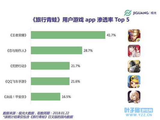 《旅行青蛙》具体的用户画像暂未公布,但无疑的是,这款游戏的用户也是女性居多。《旅行青蛙》用户手机端其他游戏类app渗透率前三分别为《王者荣耀》、《恋与制作人》、《荒野行动》,其中《恋与制作人》的渗透率达到28.7%。不难推测,两者存在一定的竞争关系。