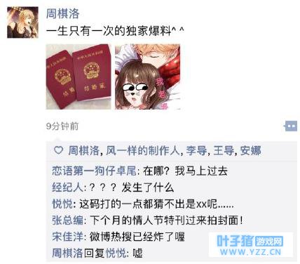 首先是周太太们的超级巨星周棋洛,“一生只有一次的独家爆料^^”,这不仅是一次独家爆料,还有许下的一生承诺,但是为何要给配图的太太打上如此厚的码,难道是担心自己的太太会受到狗仔队还有粉丝的围堵和骚扰吗?