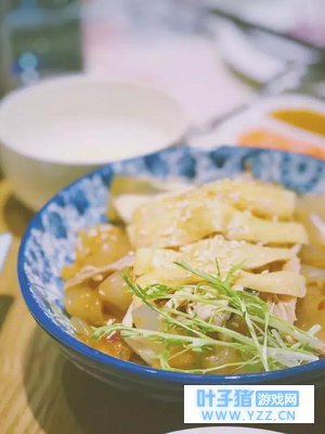 凉皮手撕鸡 凉皮手撕鸡的酱汁很惊艳, 是甜辣口感的, 但鸡肉做的有些咸了, 凉皮很厚实, 不过这个创意要给满分啊, 把凉皮和鸡肉做成一道菜, 也是没谁了!