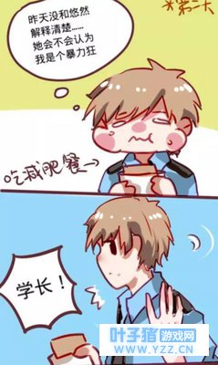 第二天,白起一边吃着减肥餐,一边回想着昨天的事情!“恩恩,昨天没有和悠然解释清楚,悠然会不会以为我是个暴力狂呢?”然而,耿直的学长似乎完全没有想到悠然的另一种想法!