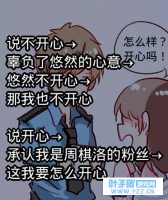 然而,此时的白起学长却陷入了深深的苦恼之中!怎么办?说不开心,辜负了悠然的心意!悠然不开心,我就不开心!说开心,承认我是周棋洛的粉丝?what?开什么玩笑?这要我怎么开心呢?大伙来说说,我们的白起学长改怎么办?