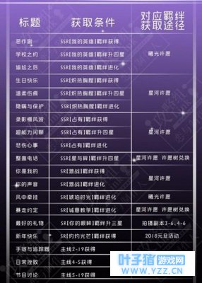 [-海峡网] 恋与制作人中各电话和对应的羁绊卡大家都得到了吗?今天就为大家带来了由“LINK攻略组”分享的恋与制作人全男主电话获取途径一览,包括各电话对应羁绊卡说明,还不了解的朋友可以参考,希望能帮到大家。 理了目前所有电话的获取途径,大家可以有选择地兑换/刷副本了。 星河许愿:即钻石池 曦光许愿:即金币池 白起