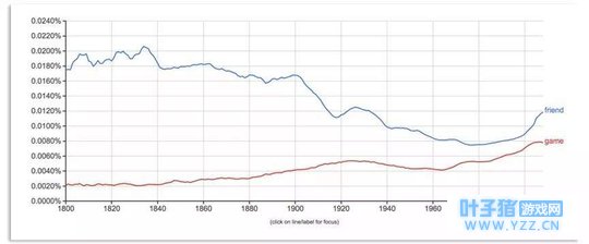 找到本心,实现它。 你别无选择。 从游戏害人 到游戏社交 当我们说放下手机里面的纸片人的时候,不是说游戏是害人的,大家不要去玩(我们又不是雷电法王杨永信)。 因为时代发展中,很多我们信奉的逻辑往往会完全颠倒。 比如全民参与的游戏往往会具备一定的社交属性,这一点从google books相关书籍的关键词频率就可以看出。 我们说的是不要在压力与受挫之下放弃对于内心需求满足的努力。