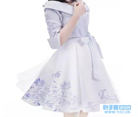 城市漫步 小个子穿搭重点 露肩上衣+印花纱裙