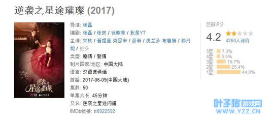 此前,根据娱乐圈恋爱文字游戏《逆袭之星途闪耀》改编网络剧《逆袭之星途璀璨》,虽有泰国明星普提查·克瑟辛(Push)、宋轶、韩雪、胡兵等实力明星出演,“精灵王子”奥兰多·布鲁姆、王子文、关晓彤等友情出演,但是在播放量和话题度上却没有引起较大的轰动,累计点击16.6亿。豆瓣评分4.2,近乎一半的观众给出一星评价。
