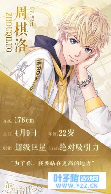 角色类型及点评:职业是总裁,帅气+多金,虽然也有霸道属性,但是比传统意义上只会霸道的雷人小说中的总裁多了“怼怼”属性,简直让人小霸王其乐无穷;而在女主工作遇到困难的时候经常督促、开导女主,有一种“人生导师爸爸”即视感。 靶向人群:各位老中青喜爱看总裁文的仙女;多金梦爱好者;学习工作中需要有人提点时受到李总指导会开心的小伙伴以及段子爱好者。 过滤人群:看到总裁两字就觉得天雷滚滚的妹纸;工作上班极累时候还要被李总怼只想糊他一脸熊脸的压力党;年下爱好者;仇富人群。 目前优势:因为段子优势流量大,各家太太都爱刷李总梗,B站还有知名主播直播泡李总;第十章竹马变天降吸粉无数甚至有了“正宫说”(我并不赞同,乙女手游弄个正宫还怎么骗钱,just主场章节而已);根据CV大大的访谈李总是个单纯的人,目前暂无黑化可能。 目前劣势:卡面质量残次不齐(没有不尊重画师大大的意思),R卡给人一种“果然是R卡”的感觉,有极好看的卡例如深夜心事、交缠视线等,这里就不放图了。但!是!眷恋海风是怎么回事?尤其小图,简直昏了故去。导致这张初始号都不怎么值钱! 2.周棋洛