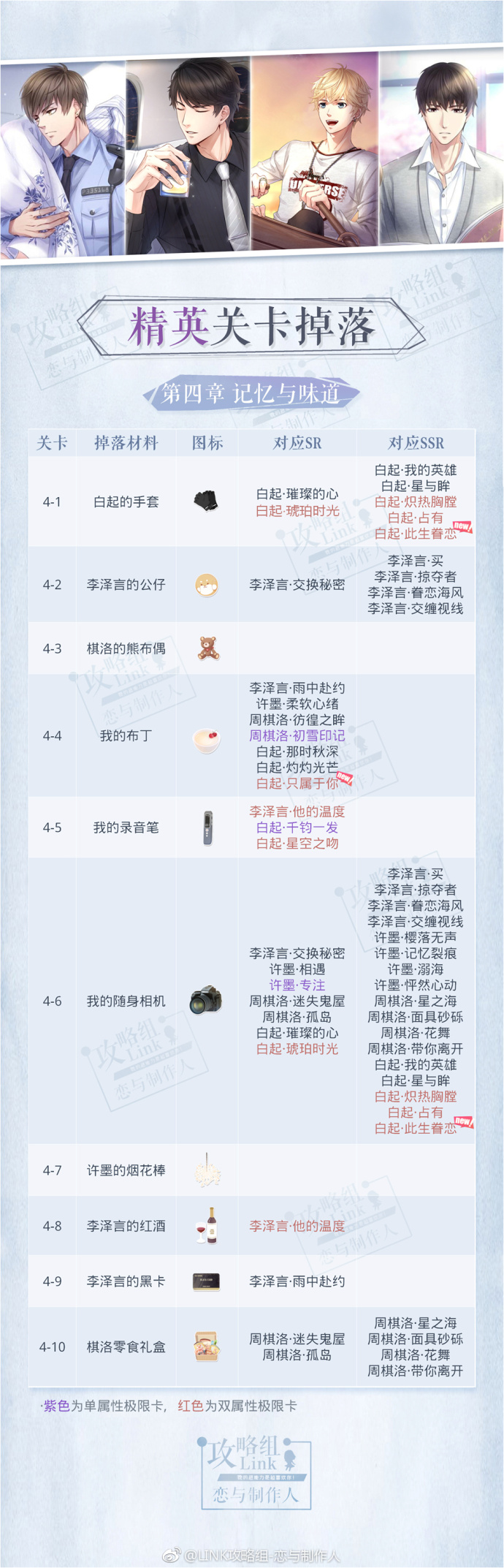 更多最新攻略敬请关注 LINK 攻略组官博 @LINK 攻略组 - 恋与制作人 或者关注我们的微信公众号( EvolLINK ) |
