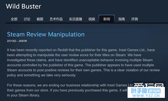 本周Valve宣布与一家涉嫌为自家产品刷好评的发行商Insel Games终止合作。据Reddit网友的爆料,该公司CEO曾给向雇员群发邮件,要求他们在Steam上购买自己的代理产品并留下高质量的好评,而且威胁会将那些不照办的员工开除。Valve发现之后很快展开调查,在确认事情属实之后就立刻宣布了终止合作的决定。 据了解,该公司代理的产品包括《灰烬守护者》、《荒野破坏者:泰坦英雄》等数款,目前这些产品已经无法在Steam上搜索到。 小二有话说:Valve爸爸终于动真格了,看来水军们的生计又断了一条。