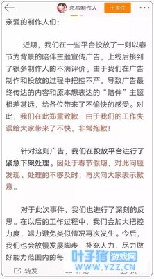 同样是游戏公司,同样是春节广告 甚至都是以“陪伴”为主题的 《王者荣耀》的“有团就有聚”就广受好评 游戏《绝地求生》的春节广告文案 “家是永远的天命圈”也很不错 在新春佳节 宣传并肩战斗、好运傍身这样的积极元素 可比将游戏和现实纠缠不清好太多 没有好好揣摩用户心理 一着不慎满盘皆输 《恋与制作人》这次是真的糟糕了 希望官方能及时挽回一下失去的用户心吧 |