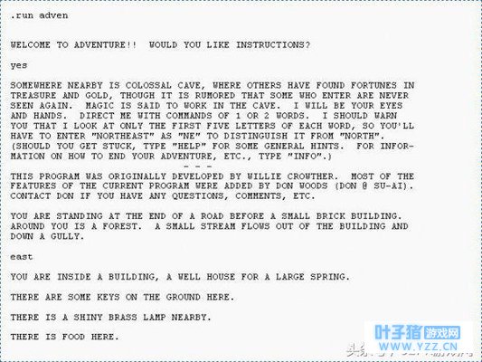 1975年一位名叫威廉•克洛泽(William Crowther)的程序员兼洞穴探索者,制作出了世界上第一款文字冒险游戏《出现》。之后威廉将游戏改名为《巨型洞穴探险》(Colossal Cave),玩家通过预先设定好的文本输入命令进行游戏,系统会根据不同的选择给与不同的结果,“未知”和“探索”等互动元素的加入,让当时还沉迷于小说的人们为之疯狂,《巨型洞穴探险》在1977年对内容进行扩展(或许DLC就是这么来的吧),三年之后的1980年《巨型洞穴探险》登上了Apple II Plus这等普及率高的微电脑。1981年制作的MS-DOS版本中《巨型洞穴探险》首次加入了图像,图像的加入让文字游戏更具象化,文字游戏正式进入图像化时代,这也为之后文字游戏及养成游戏的发展奠定了基础。