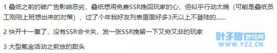 《恋与制作人》最近的元宵活动和免费ssr活动堪称商业良心,只要玩家愿意肝,SSR免费送,但也有网友表示叠纸此举实在是情非得已: