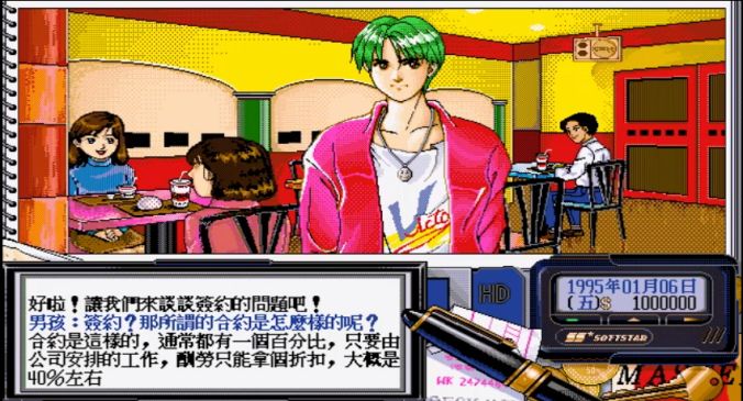 《明星志愿》是以娱乐公司经纪人培育明星艺人为主题的系列游戏,第一作于95年上市,可能 比在座的有些看官老爷的年纪都大 。 《明星志愿1》其实《明星志愿1》更像是一个 模拟经营养成游戏 。但是,男主开经纪公司的 目的是追求校花周映彤 。 游戏中,玩家扮演“绮丽之梦”娱乐公司的经理,目标是在两年内培养三位明星并拿到奖项。按照和大老板的约定,如果不能在期限内完成目标,周映彤小姐姐就要被开除,公司也会倒闭。