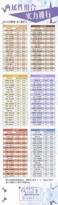 各位制作人晚上好!最近出的活动多了,大家手里的羁绊也越来越多了吧。到底应该培养哪些羁绊这个问题,估计困扰了许多小伙伴。 所以,LINK攻略组综合了最新的羁绊列出了完整版的 属性排行榜 ,方便大家选择羁绊培养~希望能帮到选择困难症的你哦! *此版本更新至元宵活动·温柔灯火 p1-p4 四男主羁绊 属性汇总 p5 单属性 实力排行 p6 两属性 组合实力排行 *实力排行仅参考属性值,实际过关得分排行可能因权重不同而变动
