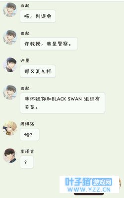 谢谢你们长的这么好看还来阅读晓峰的文章,拿起你的小手指点下关注有更多惊喜哦! 晓峰在这里祝大家新的一年里事事顺心,这里有最新鲜的游戏资讯,有各种游戏攻略,更有各种游戏玩家的奇葩事情,各种吐槽各种分享尽在这里。在这里你可以体验到一个无比精彩的游戏周边,一个让你流连忘返的游戏大本营,如果你喜欢晓峰的话可以点一波关注哦,据说点了关注的人2018年都發發發,点击头像更多精彩内容等着你哦,一个神奇的游戏世界再向你招手呢。 这是一个奇妙搞笑的故事,白起怀疑许默和黑帮有关系,其实并没有任何事实根据,只是单纯的靠自己的猜想,就删除了许默的微信。自己的唯一的猜想就是许默的墨字和BLACK SWAN的BLACK有关,你们说够不够奇葩,后来许默通过正当的手段维护自己的合法权益,白起也同意了道歉,但是一点诚意都没有,后来在许默的逼迫下,白起同意将自己的警官证给许默用几天,可以压迫李泽言,后来搞的李泽言一头雾水~