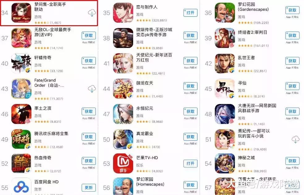 App Store的畅销排名常常随着各大手游的层出不穷的版本更迭而变换,从图上也可以看出,《梦间集》的游戏icon与名称都发生了改变。本次排名的突然飙升,是否与如图所示的《全职高手》联动有关?