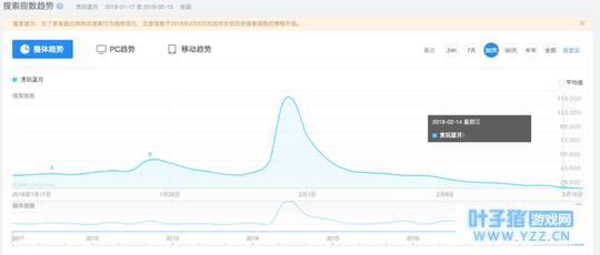 当日,《贪玩蓝月》的百度搜索指数和媒体指数都达到了峰值。这是《贪玩蓝月》的又一次成功的负面营销案例。 要问去年最火的游戏是什么,有很多选择:《王者荣耀》、《绝地逃生:大逃杀》、《旅行青蛙》 …… 但是说起 2017 年最火的游戏广告,你一定听过这个:“大扎好,我系古田螺,我系渣渣辉,探挽懒月,介四里没有挽过的船新版本,挤需体验三番钟,里造会干我一样,爱象节款游戏。” 标准的港普、魔性的广告语、浮夸的造型、劣质的顶级装备 …… 王座上高贵霸气的巨星古天乐、黄金圣甲加持的影帝张家辉、手挥明月暗刀的山鸡陈小春……无数视频网站和弹窗广告里的梦魇, B 站网友的鬼畜经典素材 …… 那么,《贪玩蓝月》究竟是一款什么样的游戏? 据悉,“贪玩蓝月”是宣传词,不是游戏名,“贪玩”是运营商,全称“贪玩游戏”,而“蓝月”全称则是“蓝月传奇”。贪玩平台前后推出数十款游戏,而真正爆火的只有《贪玩蓝月》。 《贪玩蓝月》是贪玩游戏 2016 年 4 月发行的一款网页游戏,复制的是经典网游《传奇》,类似的页游还有《传奇霸业》、《攻沙》等。贪玩游戏官方称,全平台月流水已经突破 5 亿,计划于 5 年内在国内 A 股上市。而据网页游戏数据中心“9K9K.COM”数据检测统计,贪玩蓝月去年总流水相加达 9.1 亿元,在国内页游里位列第一。 这么一款平平无奇的页游,凭什么从一堆传奇类游戏里脱颖而出?