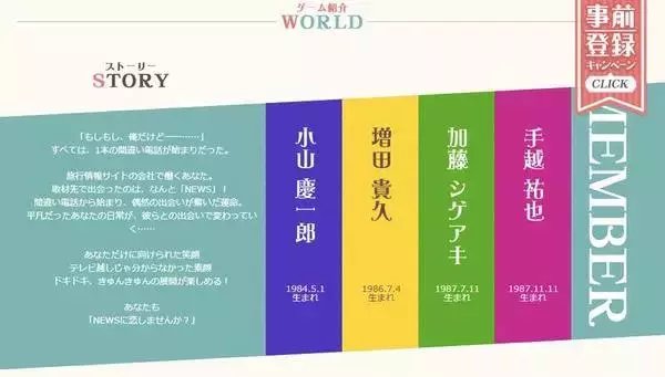 “NEWS”为日本杰尼斯旗下偶像团体,由成员小山庆一郎、増田贵久、加藤成亮与手越祐也所组成。这是继2013年推出《ラブセン~V6とヒミツの恋》后,日本杰尼斯与GREE再度合作。