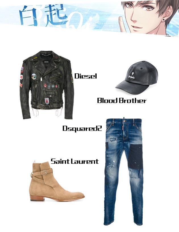 白起 做旧的夹克与牛仔裤写满了男人的历史,皮革混着男性荷尔蒙,升华了阳刚的魅力。驼色鹿皮高靴,随意的棒球帽,不羁不代表不收拾,而是乱种中有序。 周棋洛:王俊凯