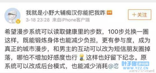 这位太太的思路果然是清奇的不行,而且非常棒。 城市漫步跟现实相结合起来,更加显得游戏的真实性,本来就是各种跟纸片人谈恋爱,结果真的需要陪着他们一起走路,真正的城市漫步啊~虽然刚开始感觉有点奇怪,但是细思极恐,真的是超赞也~ 虽然对于阿梦这种懒人来说,有点太难了,每天步数只有在2000徘徊,还是因为公司有楼梯同事沟通积累而成,来个一万步什么的,可能会逼死阿梦吧~但是为了周甜甜,是不是要走起来了~~ 后面的建议,缩小到后台。完美解决所有问题~反正手机放着也是放着,但是一定要开着屏幕走,什么事情都不能做,确实败笔,能后台自动走,开心(*^▽^*)~ 让5月来的更快一点吧~让弃坑边缘的阿梦再纵身而下吧~ 话说,许撩撩的免费SSR,12天签到免费拿,根据情节还可以吃一个月的狗粮了,本是回了,但是撩撩,控制一下自己,阿梦要爬墙了~