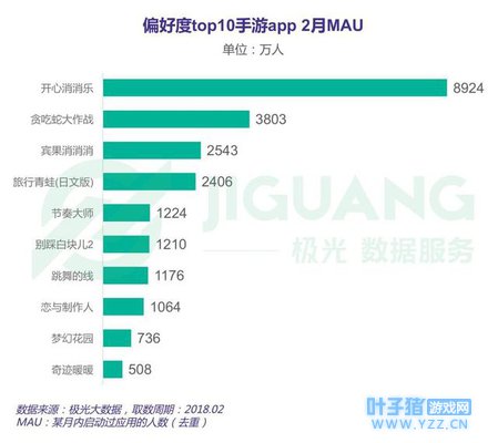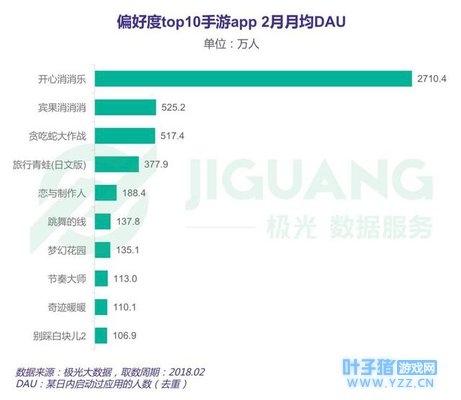 其中,《开心消消乐》2月的月均DAU为2710.4万,MAU为8924万;《恋与制作人》月均DAU为188.4万,MAU为1064万;《宾果消消消》月均DAU为525.2万,MAU为2543万;《旅行青蛙》月均DAU为377.9万,MAU为2406万。